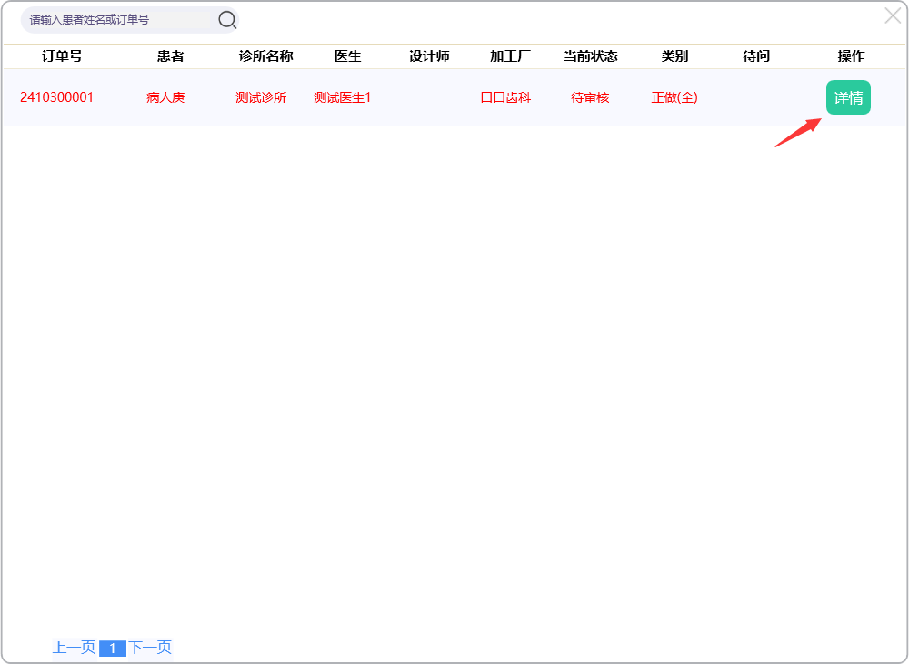 点击【审核中】图标,进入审核中列表,点击详情可进入订单查询界面:
