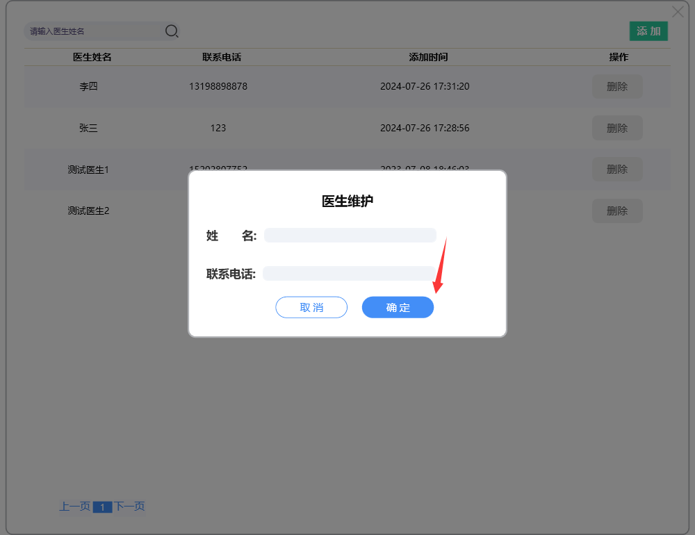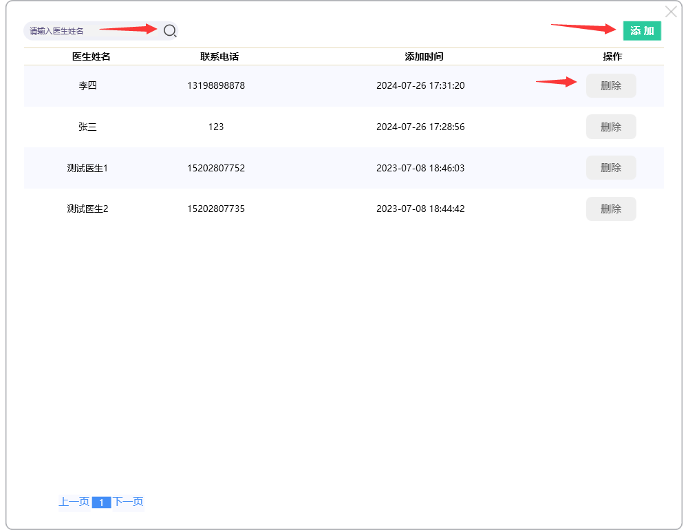 点击【删除】按钮,可删除指定医生;
