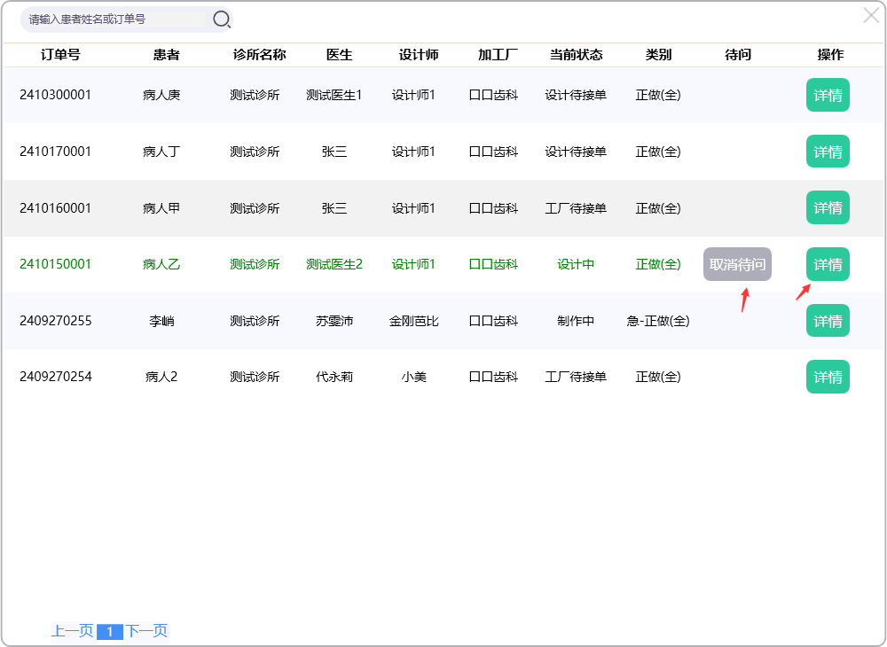 修改或添加项目的操作与下订单时选择项目牙位的操作一样,请参阅【下单】。