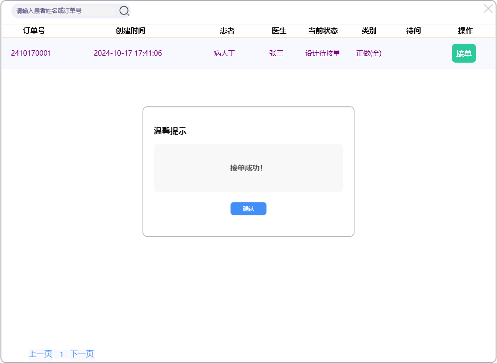 点击【接单】按钮,接单成功!