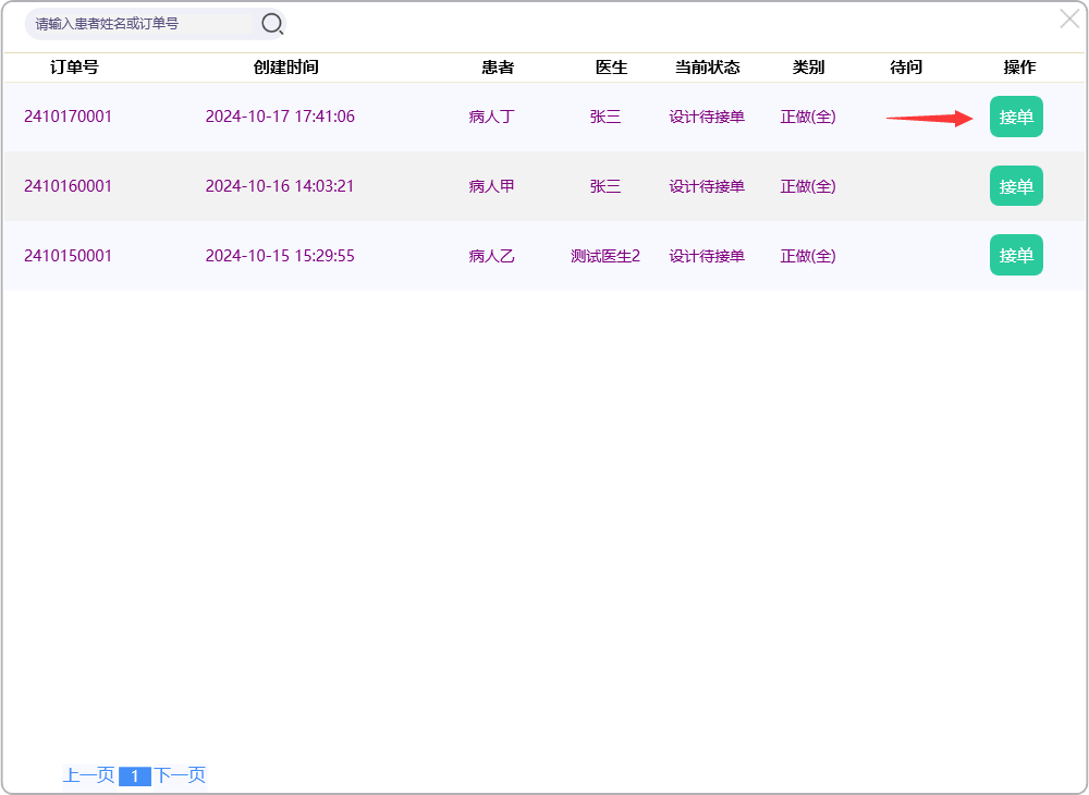 点击【待接单】图标,进入待接单页面: