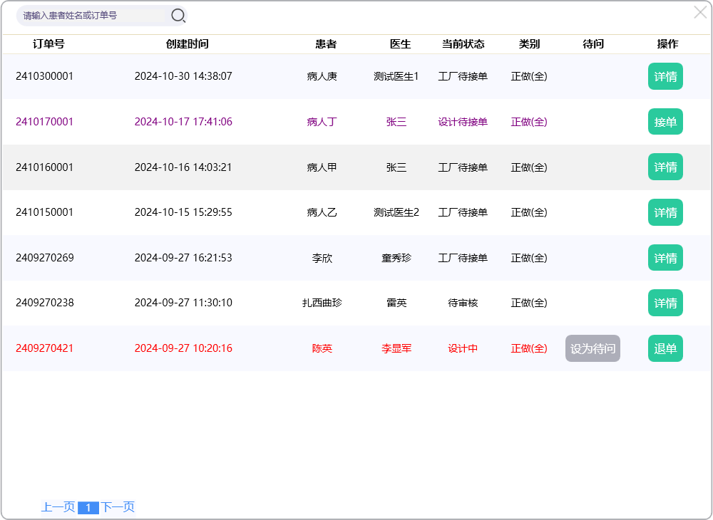 点击【返工订单】,系统按订单时间降序排列展现返工订单: