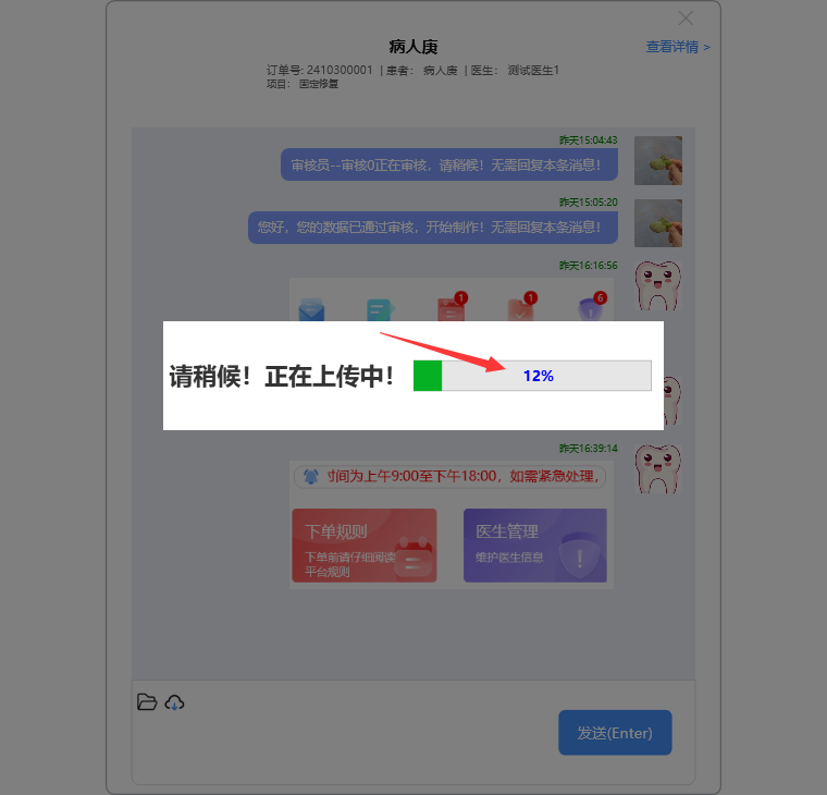 系统进入与平台中心的沟通界面,沟通的操作方法请参阅消息列表的操作方法: