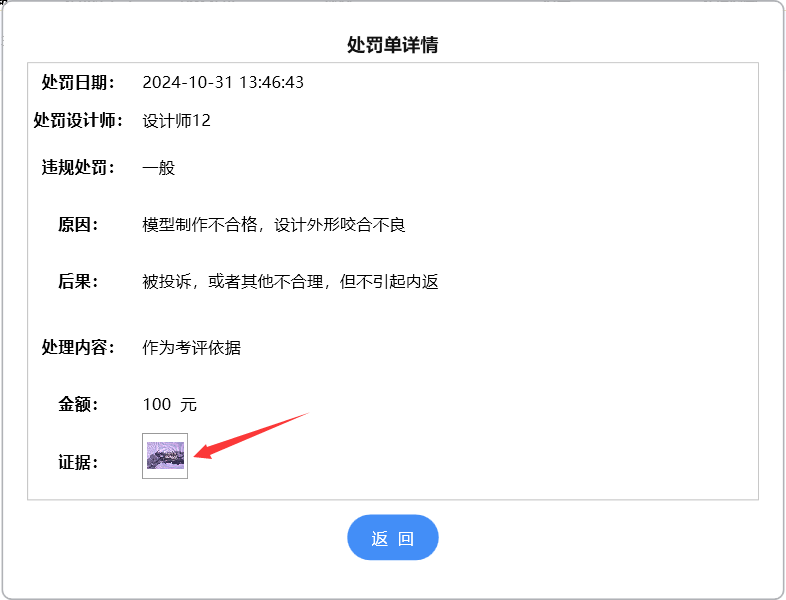 双击罚单记录,查询罚单详情,包括罚单证据图片: