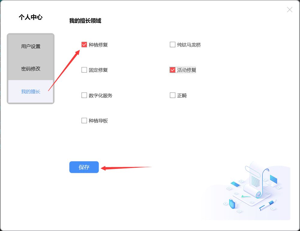 勾选擅长领域,点击【保存】按钮生效。