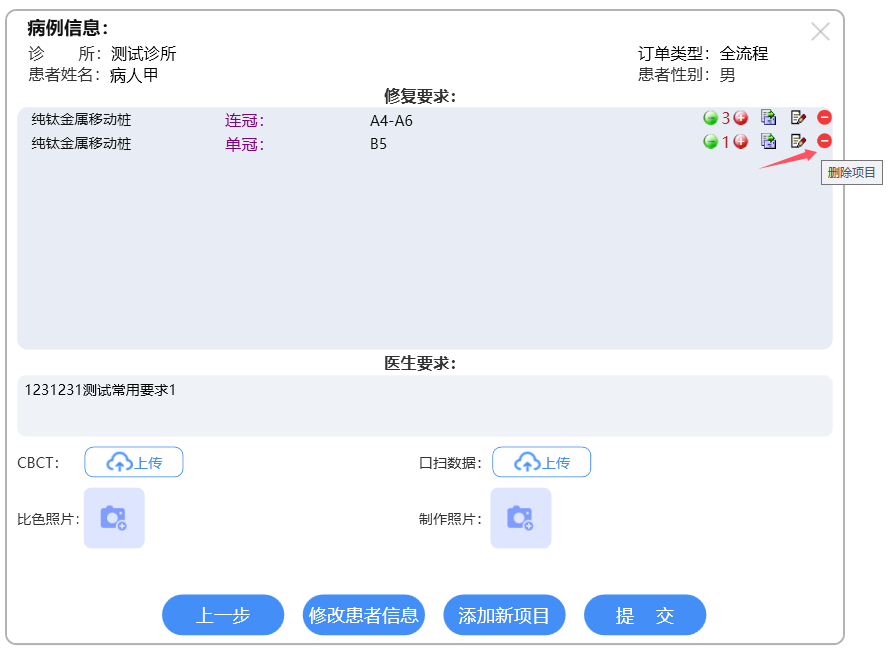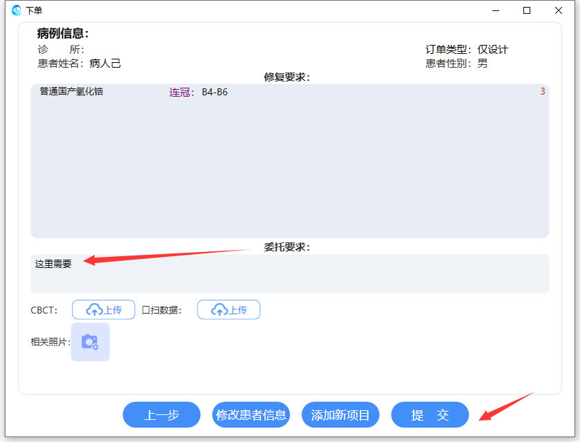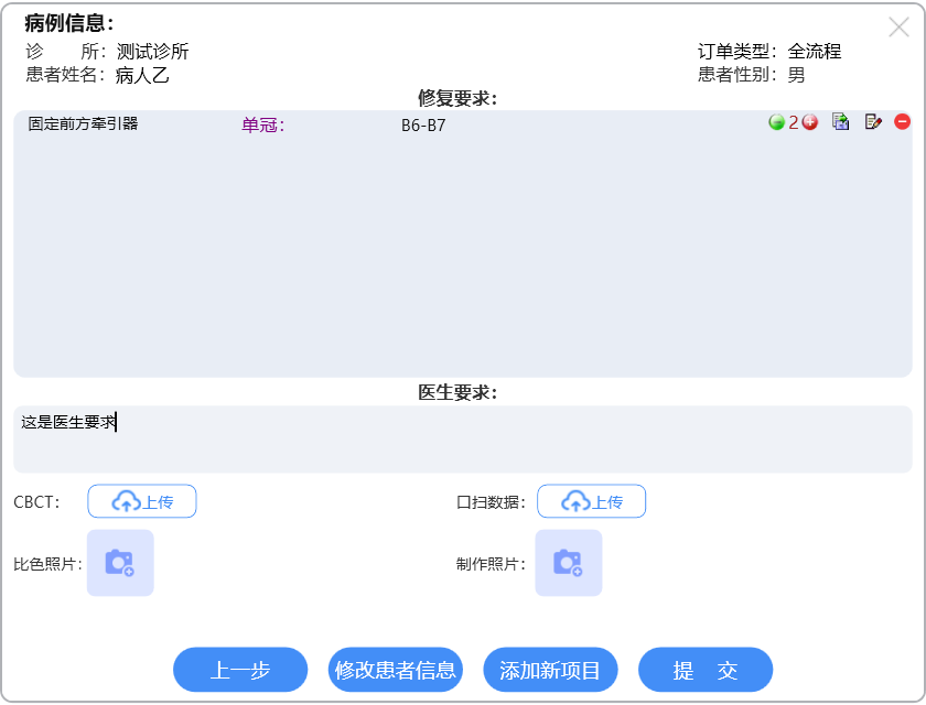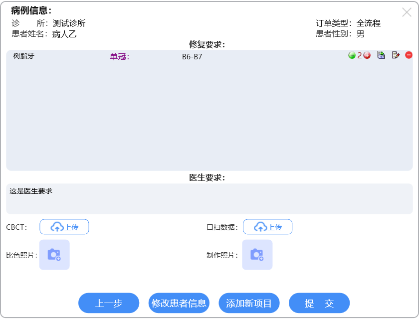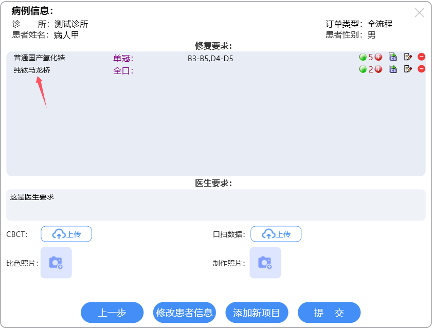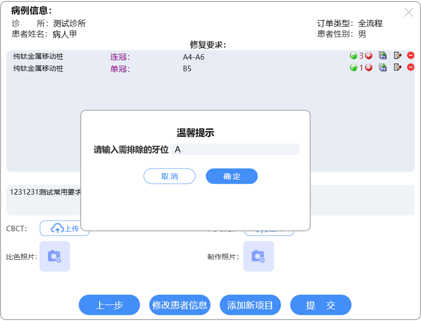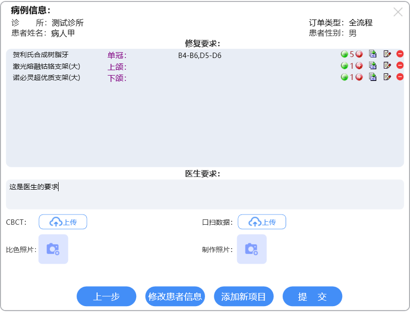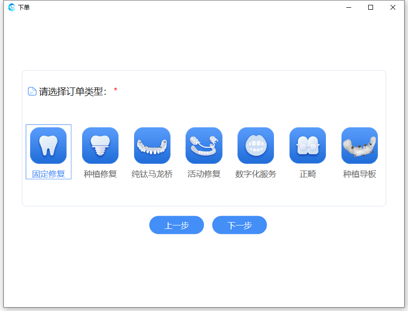 选择相应订单类型进行牙位选择,具体操作详见各订单类型的说明文档。选择牙位后,进入汇总信息界面