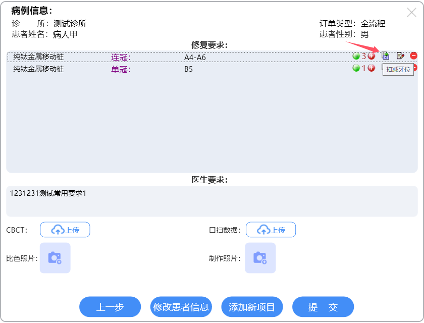 如果有连冠,而且需要减少其中几颗,则点击扣减【牙位】图标;如下图