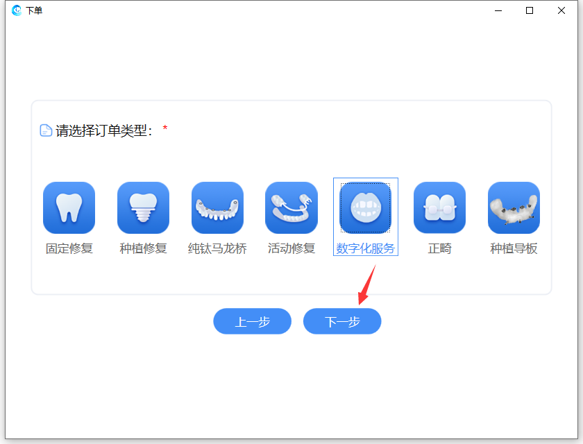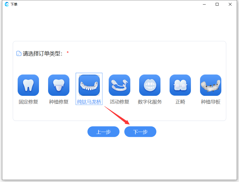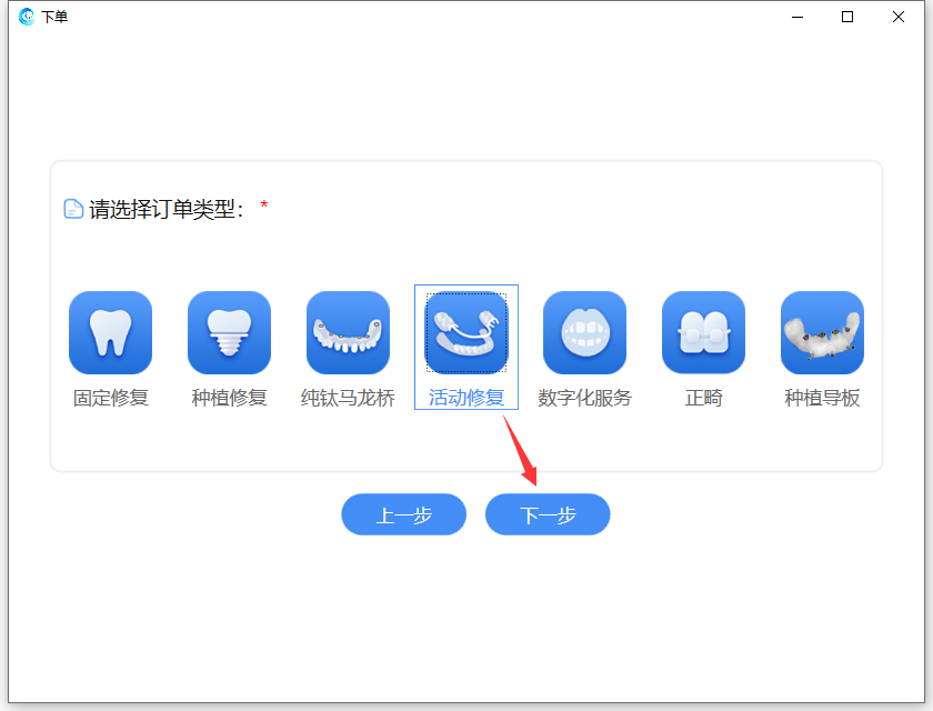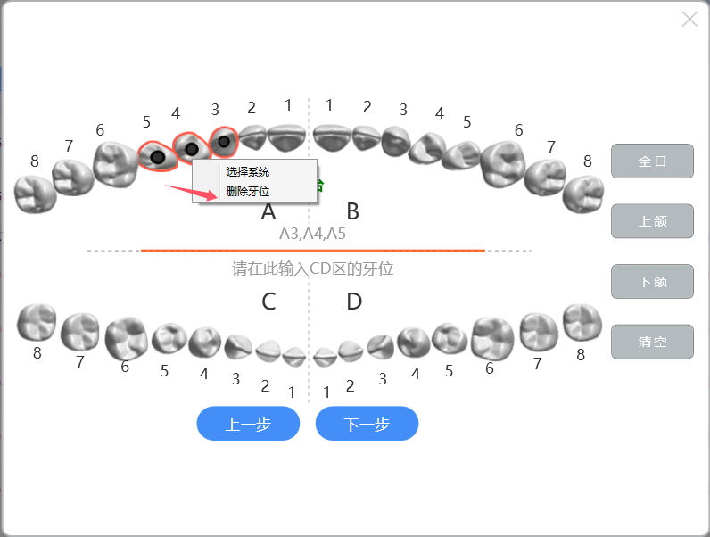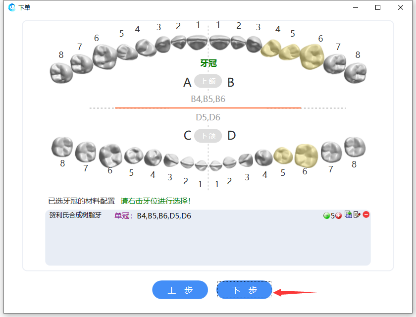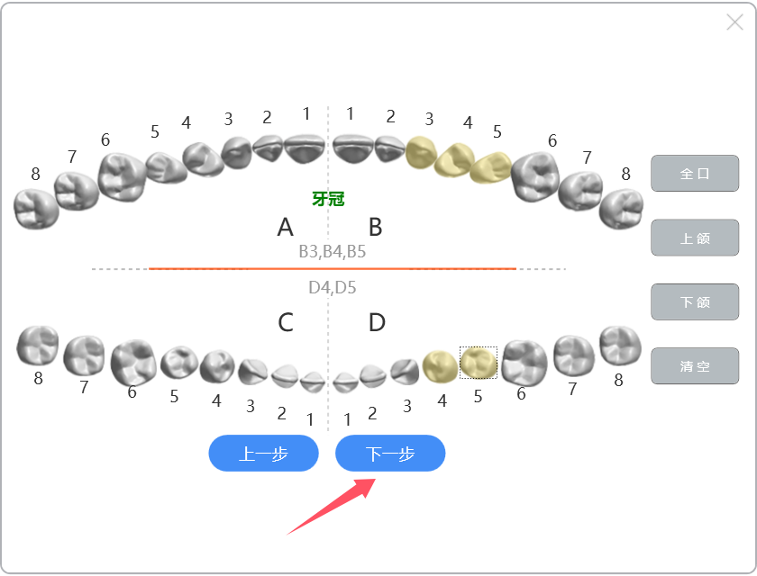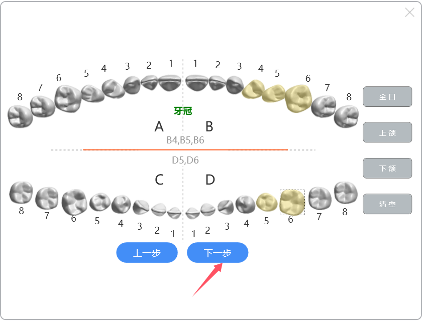 选择牙位,点击【下一步】: