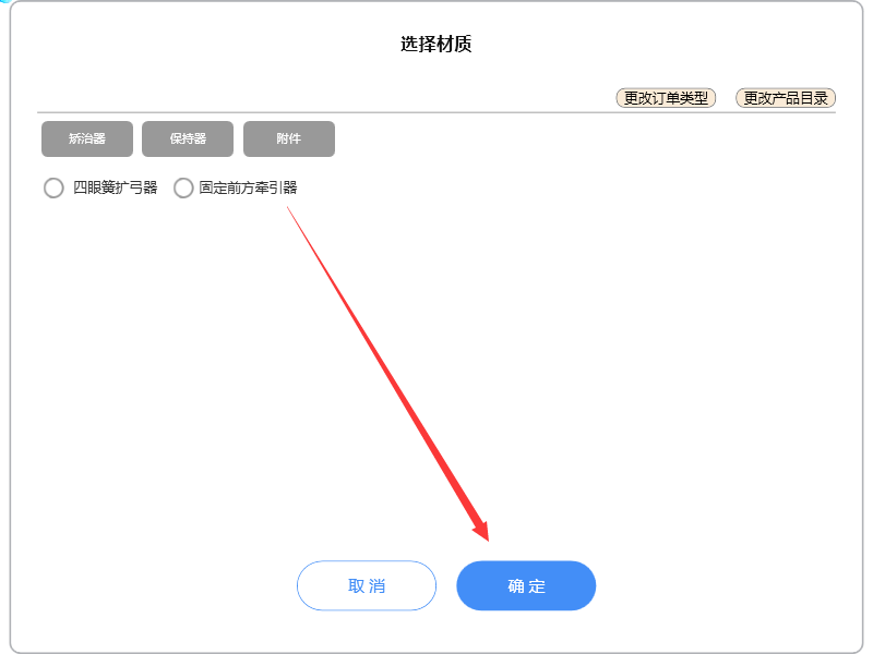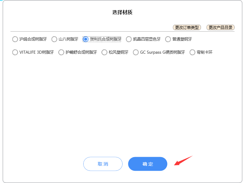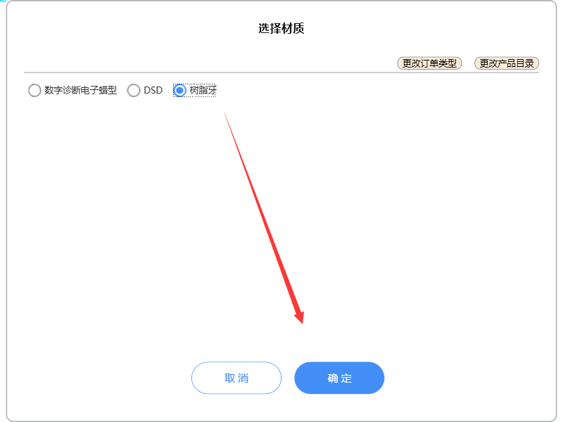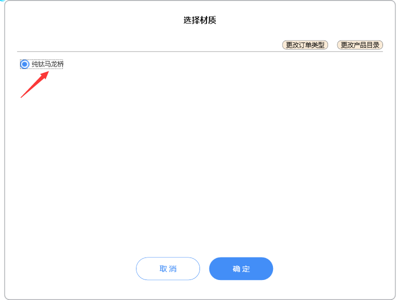 如果所需材质不在列表中,请点击【更改订单类型】和【更改产品目录】更新列表即可。