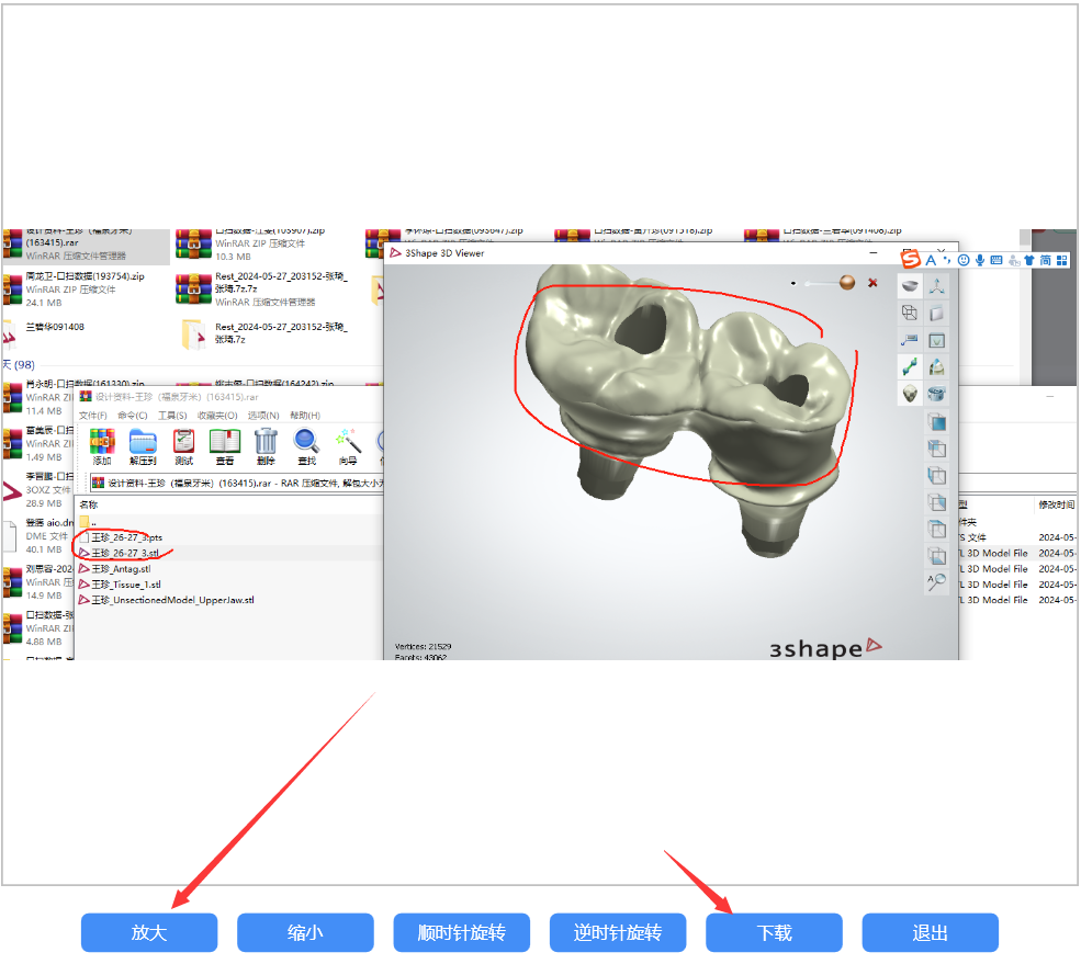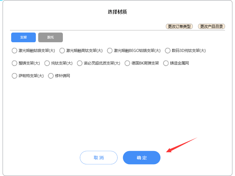 如果分上下颌,则上面选择的是上颌的,系统会再次弹出选择下颌的支架或胶体: