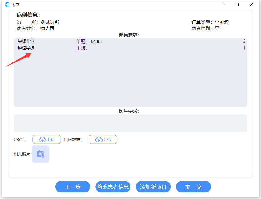 点击【修改患者信息】,系统会回到患者姓名及订单类型界面。