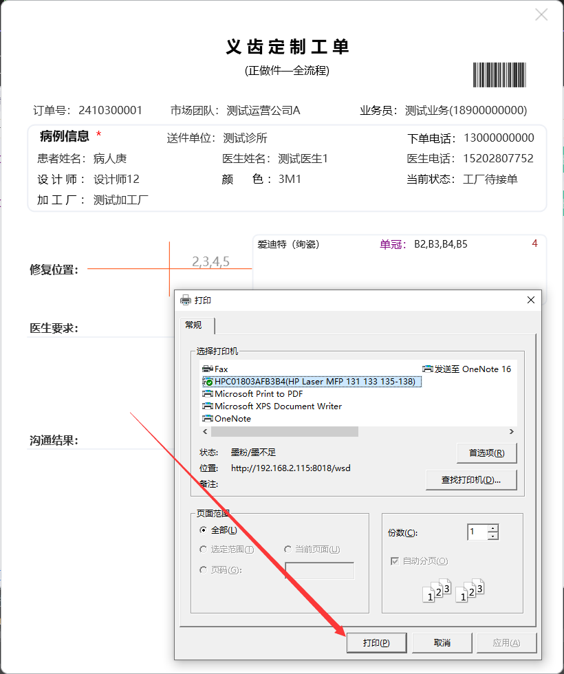 点击【打印】按钮,可打印出加工单!