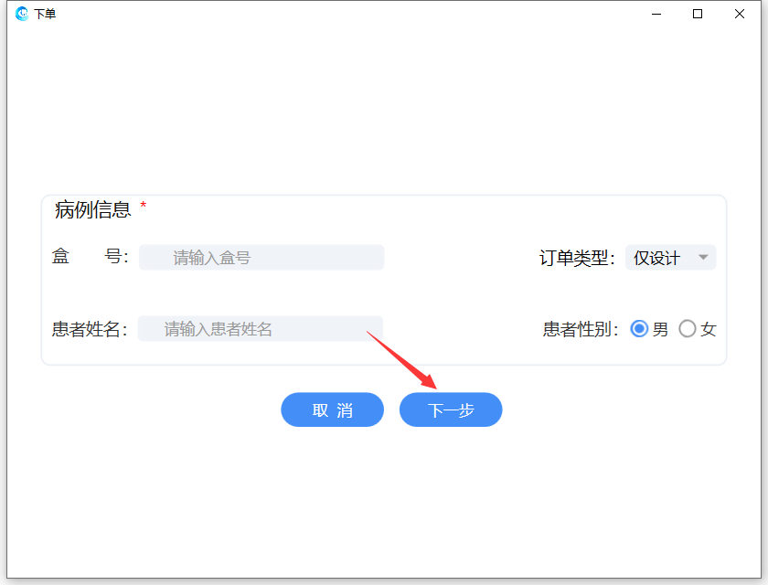 录入患者信息及盒号后,点击【下一步】