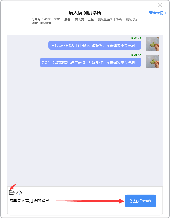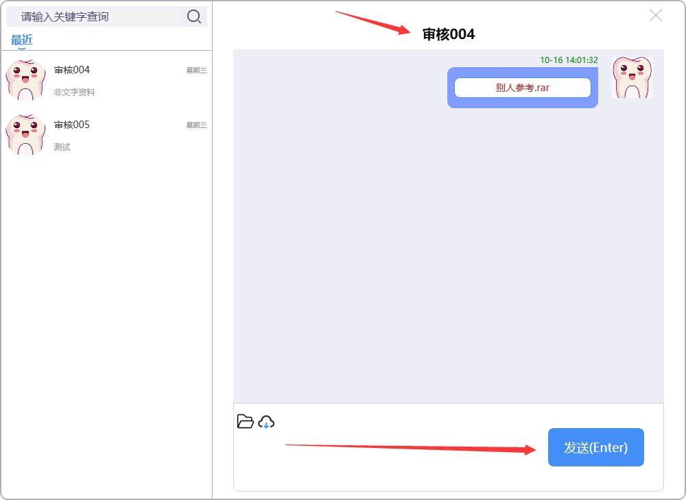 点开需阅读的消息记录,录入需要沟通的消息,点击【发送(Enter)】,或按Enter键,将消息发出: