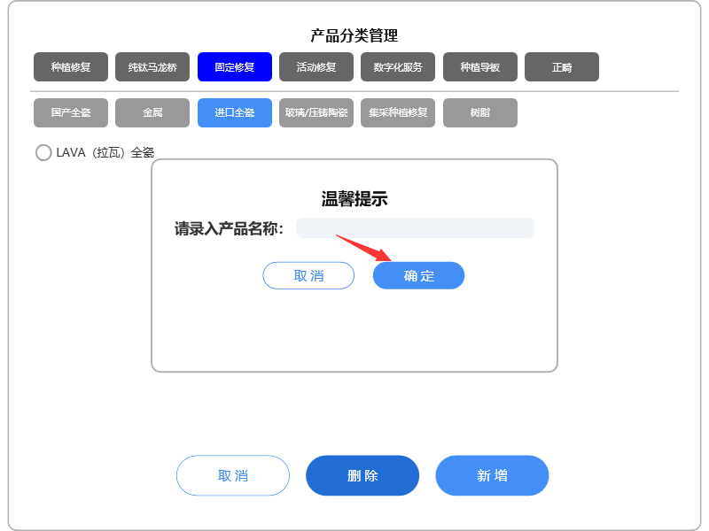 录入产品名称,点击【确定】,保存即可。