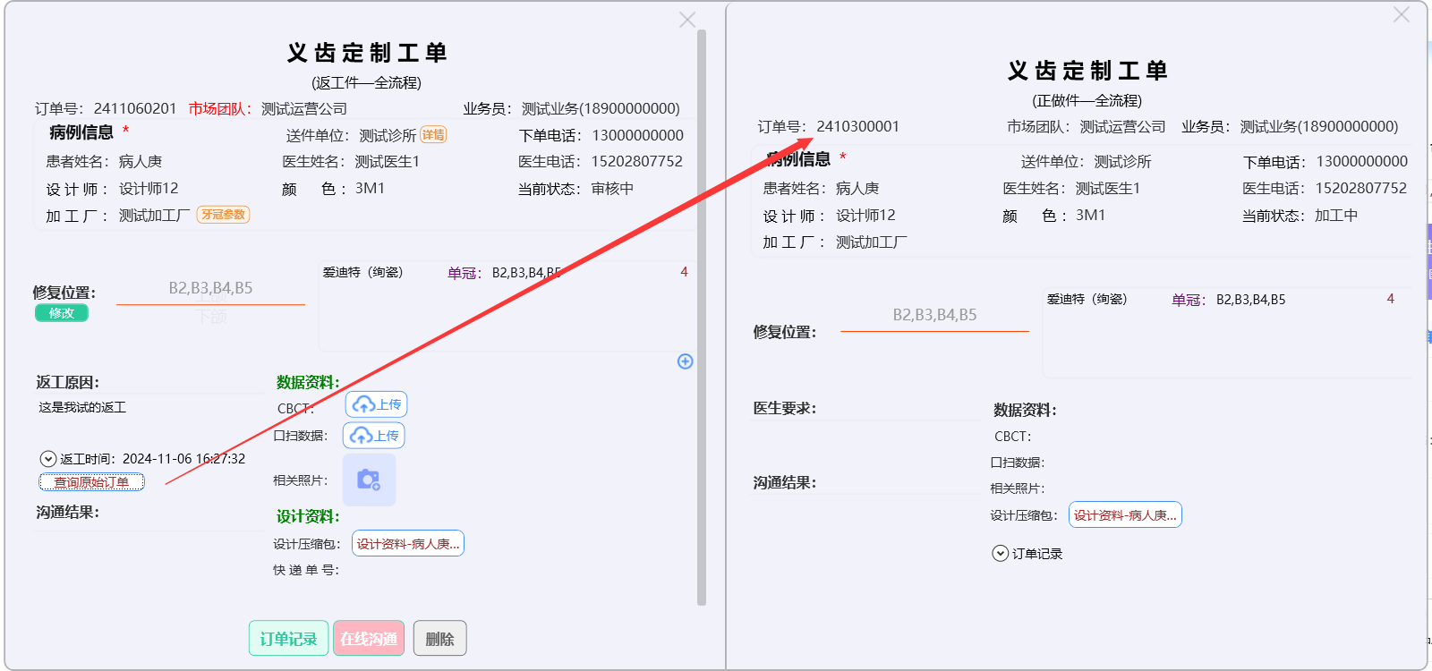 点击【返工订单】,系统按订单时间降序排列展现返工订单: