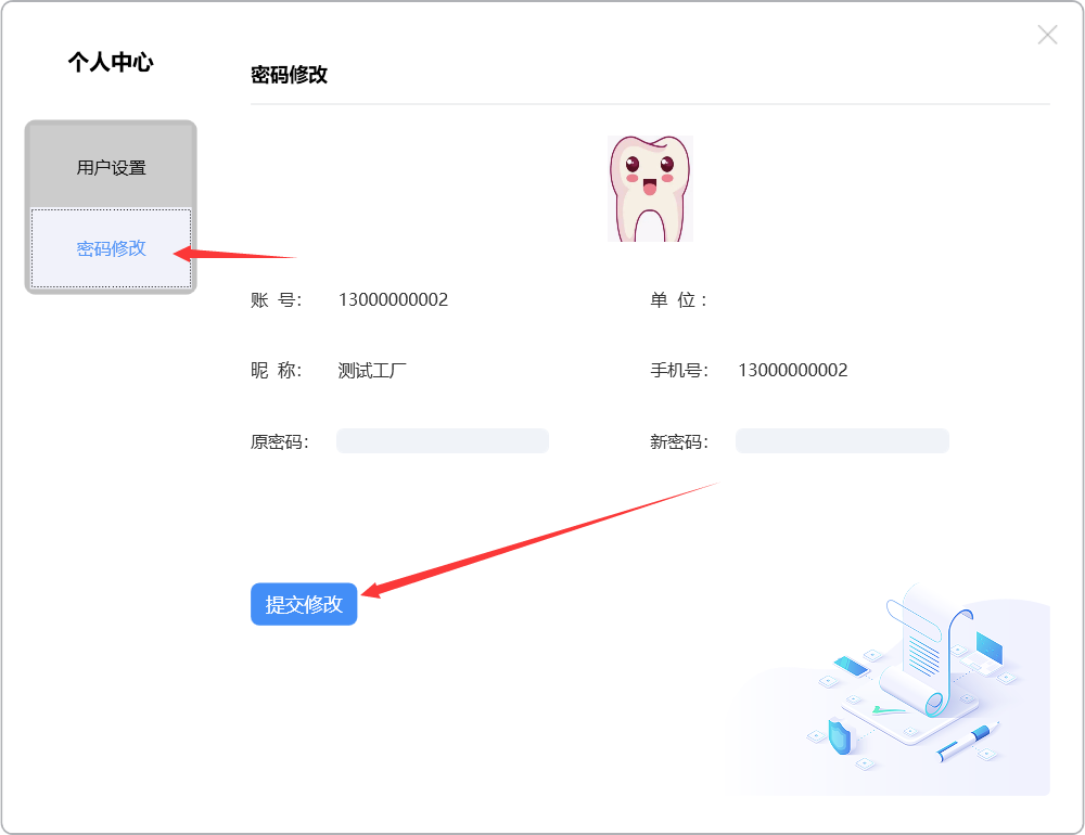 录入原密码及新密码,确保一致后点击【提交修改】按钮生效。